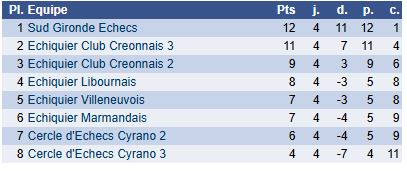 Quant aux interclubs (1 équipe en Nationale IV et 2 équipes en régionales), les batailles acharnées suivent leur cours. L'équipe de N4 tient à ce jour toutes ses chances d'être promue en Nationale III la saison prochaine, et les équipes de Régionale permettent aux joueurs expérimentés comme aux joueurs commençant de se côtoyer dans des conditions de compétition réelle.