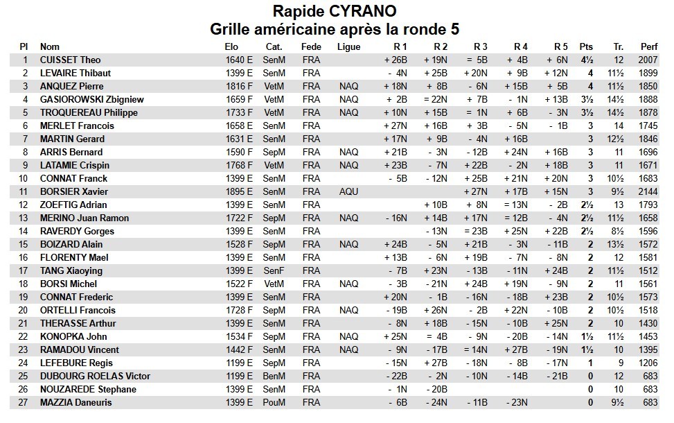 Ci-dessus les appariements de la ronde 2